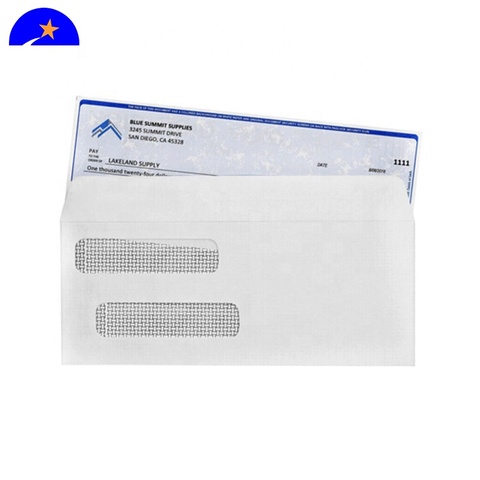 Venta al por mayor de sobres de tamaño estándar de diseño personalizado con ventana, sobres de seguridad autosellados de doble ventana impresos a medida
